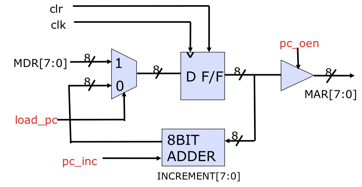 load_pc = 1일때, PC+1이 아닌 pc_input을 받는다.(MUX)