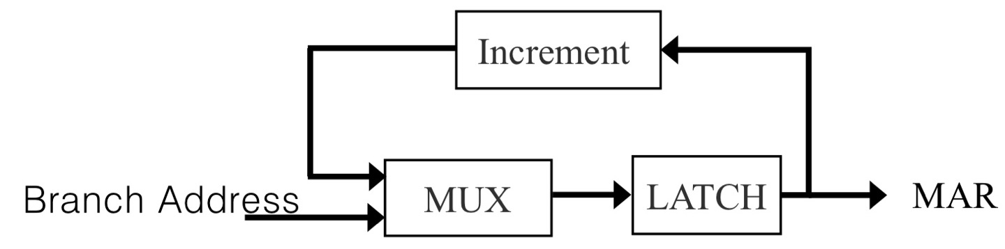 - PC가 항상 1씩 증가하지 않기때문에 MUX로 증가된 주소를 받을것인지 아닌지 결정