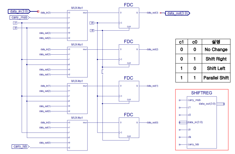 ACC 안의 제어신호는 4to1MUX로 구현했고 universal shift register 구조를 가지고있다.