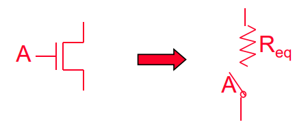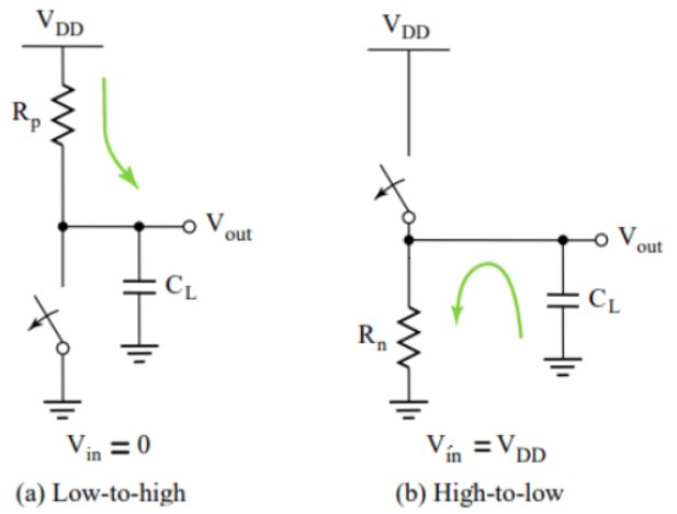 충/방전 시 위의 그림과 같이 모델링할 수 있다. 이때 falling time과 rise time을 같게 한다는 것은 PMOS쪽 R과 NMOS쪽 R을 같게 한다는 것이다. MOS는 저항처럼 생각해도된다.